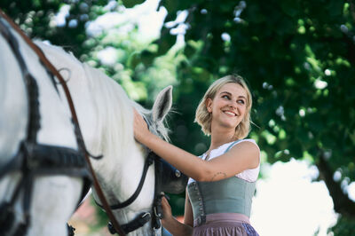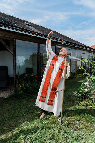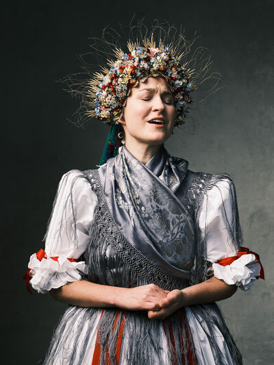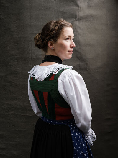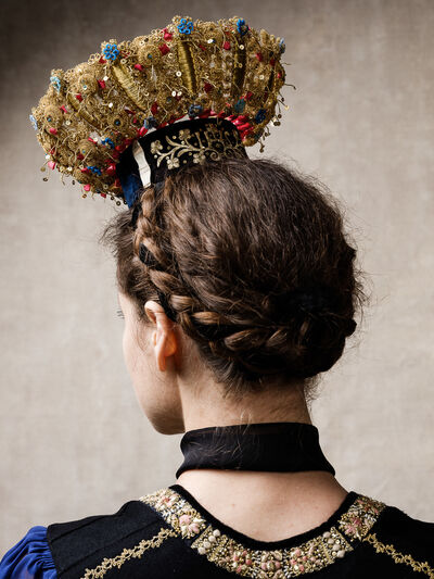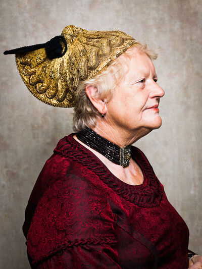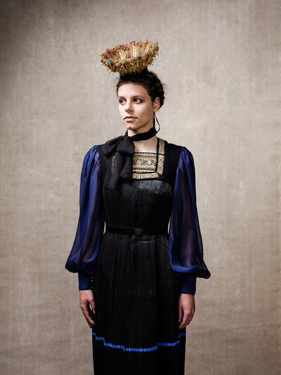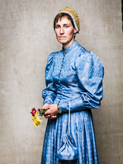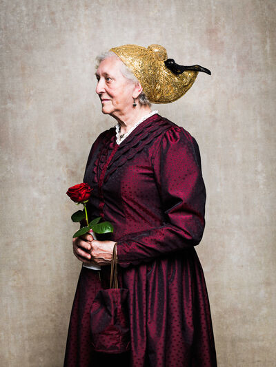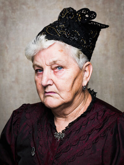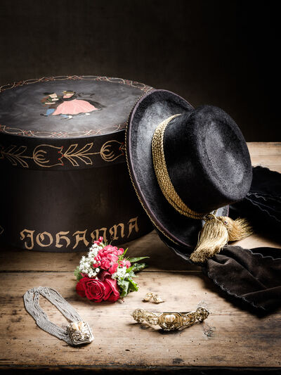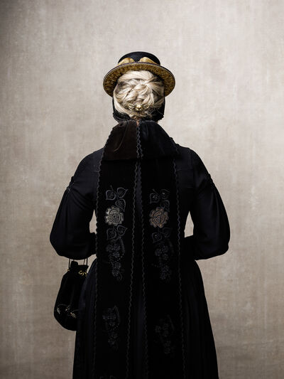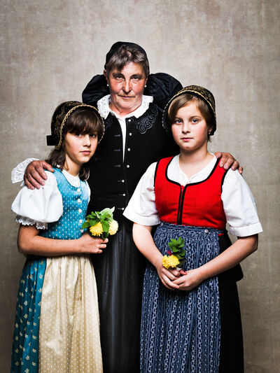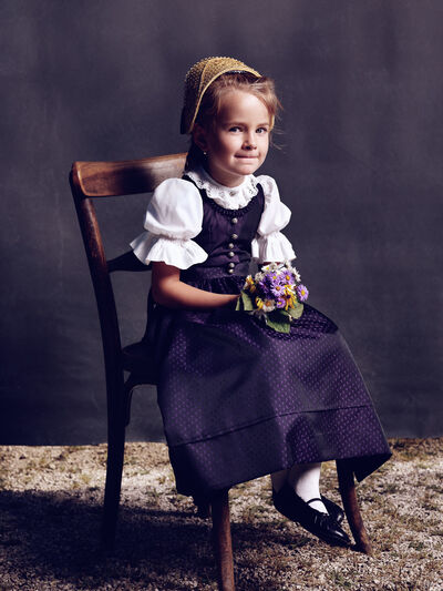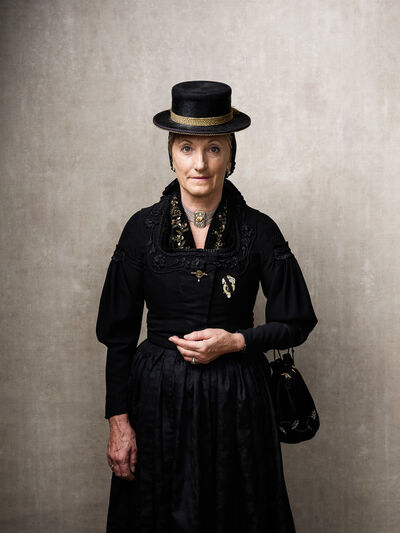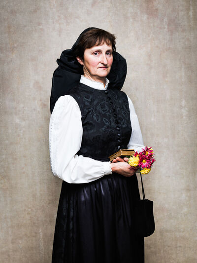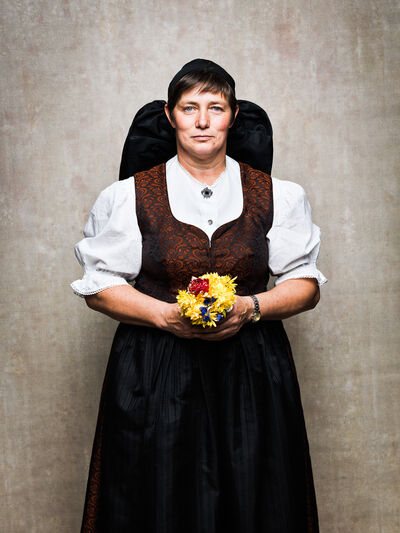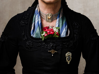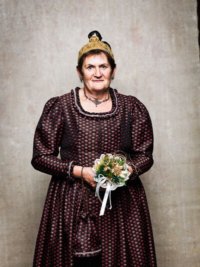 Das Sonntagsgewandgefühl ist uns dank fast unendlicher Kombinationsmöglichkeiten unserer zahlreichen, in Massenproduktion hergestellten, mehr oder weniger modischen Kleidungsstücke abhanden gekommen. Fest- und Sonntage unterscheiden sich von normalen Wochentagen kleidungstechnisch kaum. Ganz anders bei den Goldhaubenfrauen, wenn sie an hohen kirchlichen Feiertagen ihre Tracht anlegen. Kleid, spezieller Schmuck, je nach Tradition weiße Handschuhe, Beutel, Gebetsbüchlein, Rosenkranz, ein Blumenstrauß aus dem eigenen Garten und schließlich die Goldhaube, die schwarze Perlhaube oder das Kopftuch ergeben ein Gesamtbild, das dem Tag und der Trägerin eine besondere Atmosphäre jenseits des Alltags verleiht. Auf den ersten Blick erscheint diese Tracht im Korsett einer strengen Tradition. Bei näherer Betrachtung erkennt man den Spielraum für viele Details in Schnitt, Farbe, Form und Machart. Es entsteht Vielfalt in der Einheit, Individualität in der Konformität. Alle Kleidungsstücke weisen hohes schneiderhandwerkliches Können auf und sind Zeugen der großen Geduld der Herstellerinnen. Detailverliebtheit und Genauigkeit sind die Voraussetzungen für solch ein Meisterwerk. Alleine an der Herstellung ihrer Goldhauben arbeiten die Frauen über 300 Stunden. In den 434 österreichischen Goldhaubengruppen wird das traditionelle Wissen weitergegeben und wertvolle Tipps und Tricks vermittelt. So ungewöhnlich das Tragen einer Tracht heutzutage ist, so selbstverständlich wirken die ca. 60 Trägerinnen auf den über 100 Fotografien der Portraitserie Golden Blossoms. Als Fotograf konzentrierte ich mich auf ein ausgewogenes Verhältnis von Inszenierung und Authentizität. Im Zentrum dieses Spannungsfelds standen die Protagonistinnen mit ihren individuellen Eigenschafen, Vorlieben und Entscheidungen. Die reduzierte Umgebung die schlichte Lichtführung unterstreichen die Bedeutung der Dargestellten. Der Anspruch vieler Fotografen, dass ein Porträt die Persönlichkeit, die Seele einer Person einfangen sollte, trifft in gewisser Weise auch auf die Goldhaubenträgerinnen zu, geht jedoch nur so weit, wie diese einen Einblick in ihr Inneres zuließen. Informationen über ihren Charakter bleiben vage oder verborgen. Lediglich ihr Stolz auf die Tracht und die Würde, die durch die besondere Kleidung unterstrichen wird, kommen zum Vorschein. Die Blickrichtung der Frauen – üblicherweise die Bindung zwischen Betrachter und Dargestelltem – variiert. Zurückhaltend und doch präsent, skeptisch, streng, freundlich, ehrlich, unabhängig, vor allem aber selbstbewusst blicken die Damen in und neben die Kamera. Ihre traditionelle Kleidung lässt vorerst auch auf konventionelle vergangene Frauenrollen schließen, ihr Ausdruck und ihre Haltung aber zeigen ihre Präsenz in der Gegenwart, eigenständig, sozial vernetzt – im besten Sinn emanzipiert.