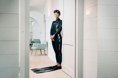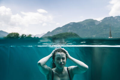 Nicole Fischer hat mich kontaktiert, um Bilder für ihren Webauftritt anzufertigen. Dabei hatte sie den Wunsch nach einer einzigartigen Bildsprache abseits der Anwalts-Norm. In einem Vorgespräch in ihren wunderschönen Kanzlei-Räumlichkeiten stellte sich heraus, dass sie begeisterte Apnoe-Tauchlehrerin ist und schnell wurde ein Aufhänger und Konzept für ein Shooting gefunden. Ich habe mich übrigens danach in einem Apnoe Tauchkurs versucht, schaffte aber leider nicht mehr als 7m. Muss an meinem Gehörgang liegen.