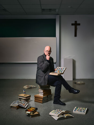Zum 40-jährigen Firmenjubiläum von Erema wurde ich beauftragt, Portraits von Schlüsselfiguren für die Festschrift anzufertigen. Jede Person sollte mit einer Doppelseite für Interview und Portrait gewürdigt werden, da kam schnell die Idee auf, statt gewöhnlicher Businessportraits passende Bildideen zu den jeweiligen Inhalten aus den Interviews zu finden. Ein herzliches Dankeschön an Erema für das entgegengebrachte Vertrauen!